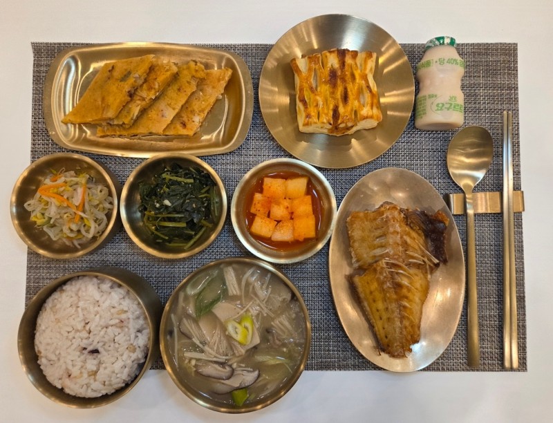 9월 25일 (한상차림) 혼합잡곡밥 버섯들깨탕 적어구이 숙주나물 해물김치부침개 깍두기 취나물볶음 (1,4층 추가찬) 살구쨈파이*요구르트 (간식) 적어구이의 장검 고단백 저지방 식품 : 생선은 소화 잘 되는 단백질이 풍부하고, 붉은 고기보다 지방이 적어 부담이 덜합니다.