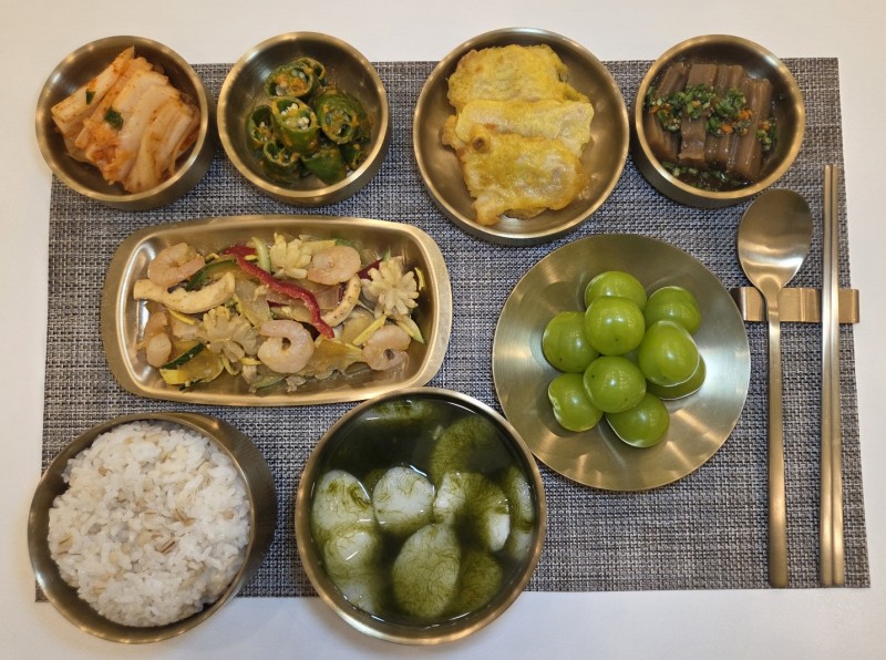 9월18일(한상차림) 혼합잡곡밥 매생이떡국 양장피 아삭이고추쌈장무침 동태전 포기김치 도토리묵*양념장(1,4층 추가찬) 샤인머스캣(간식)